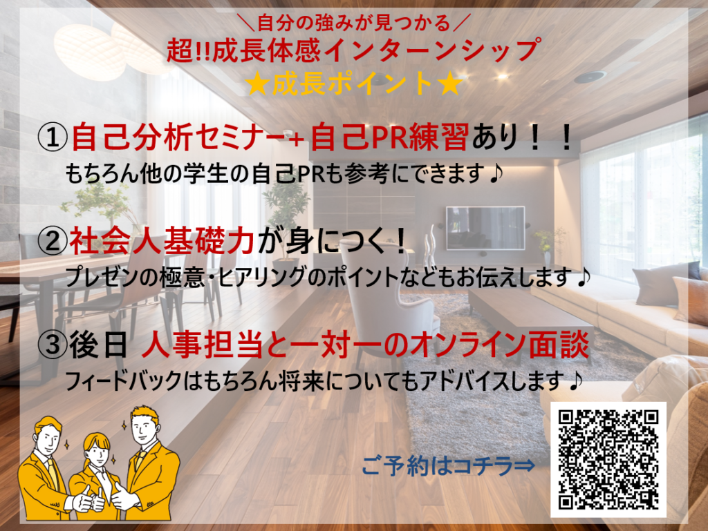 当社インターンシップは住宅業界やお仕事内容を学べるだけでなく、自己成長もでき社会人基礎力も学べます。
